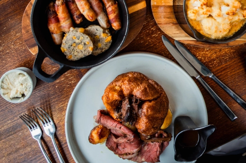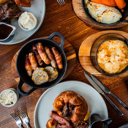Expect thick-cut sirloin with horseradish cream, herb-roasted chicken and rich nut roast with mushroom gravy. Sides arrive generously and are never second-best: honey-glazed carrots, shredded seasonal greens and parsnips with thyme.